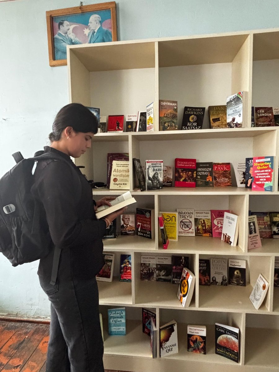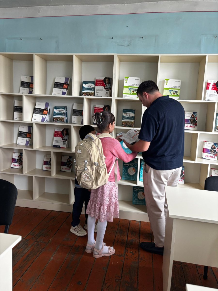 2B-Kind charity association renovated and handed over another library. We spent 1550 AZN to renovate the library, to buy two shelves (length 3.4 m), four reading tables, and fiction books. It should be noted that the Bargushad village secondary school in Ujar district is a large school with 587 students.